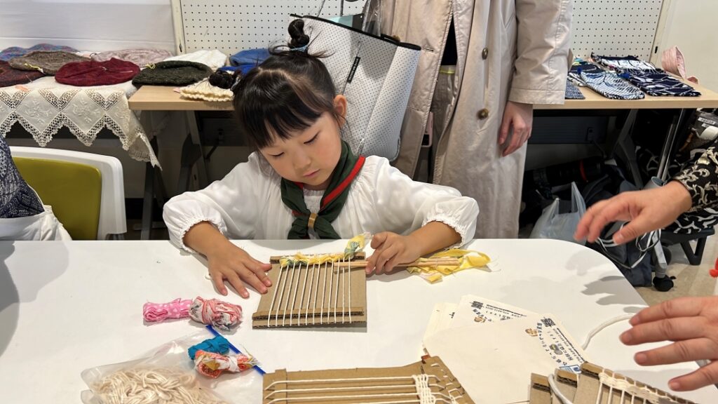 ファイバーリサイクルのサークル、革工芸、人形劇、コーヒー焙煎などなど、たくさんのブース出展があり、ステージでは、小中学校の吹奏楽部やダンスサークルの発表があったりと、休憩時間にはさまざまな体験にもチャレンジしました。